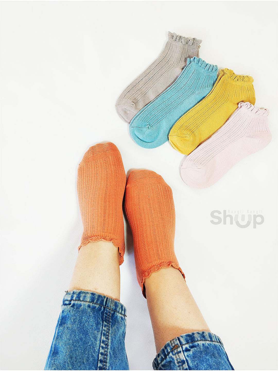جوراب مچی لب کنگره پاستیلی | انفجار رنگ در تابستانی داغ!