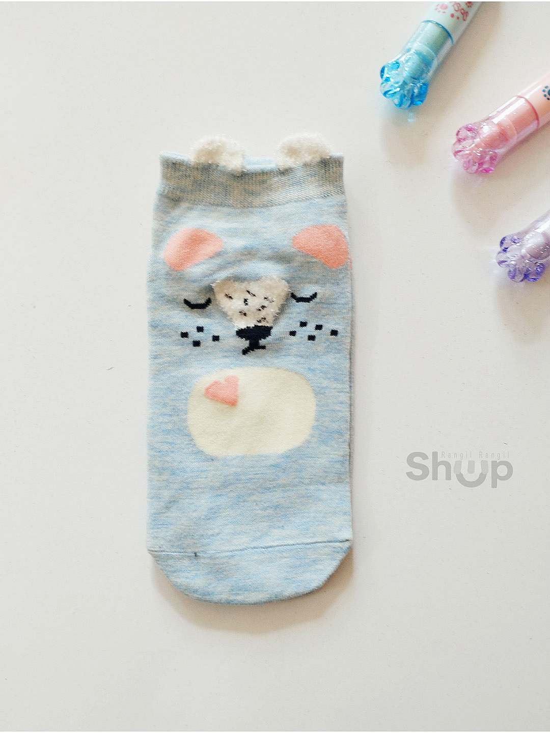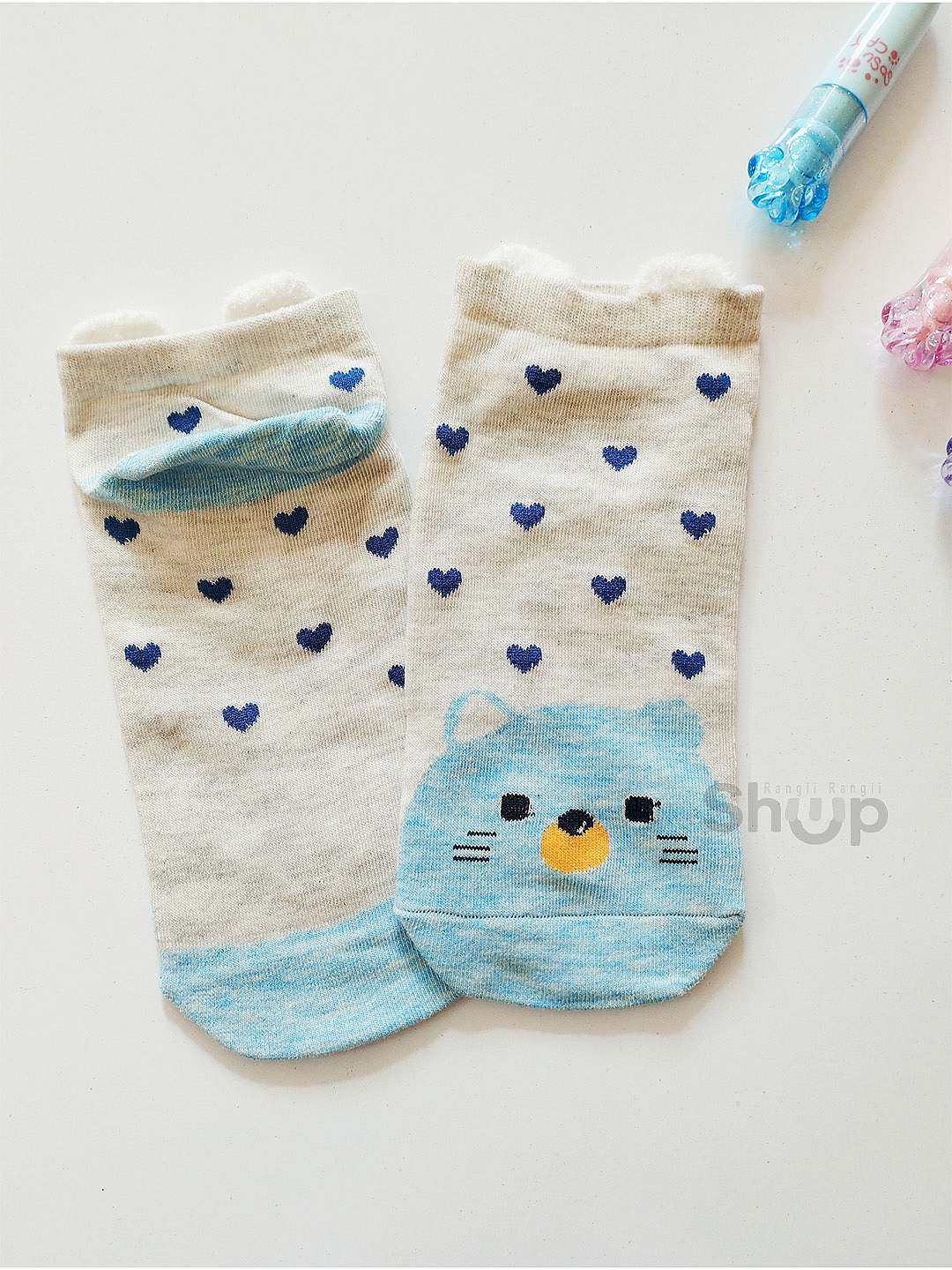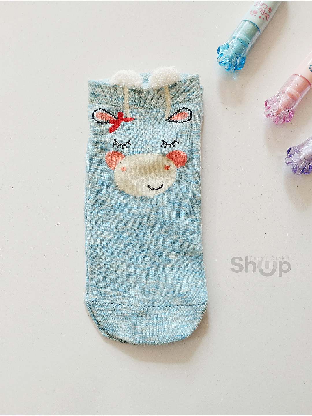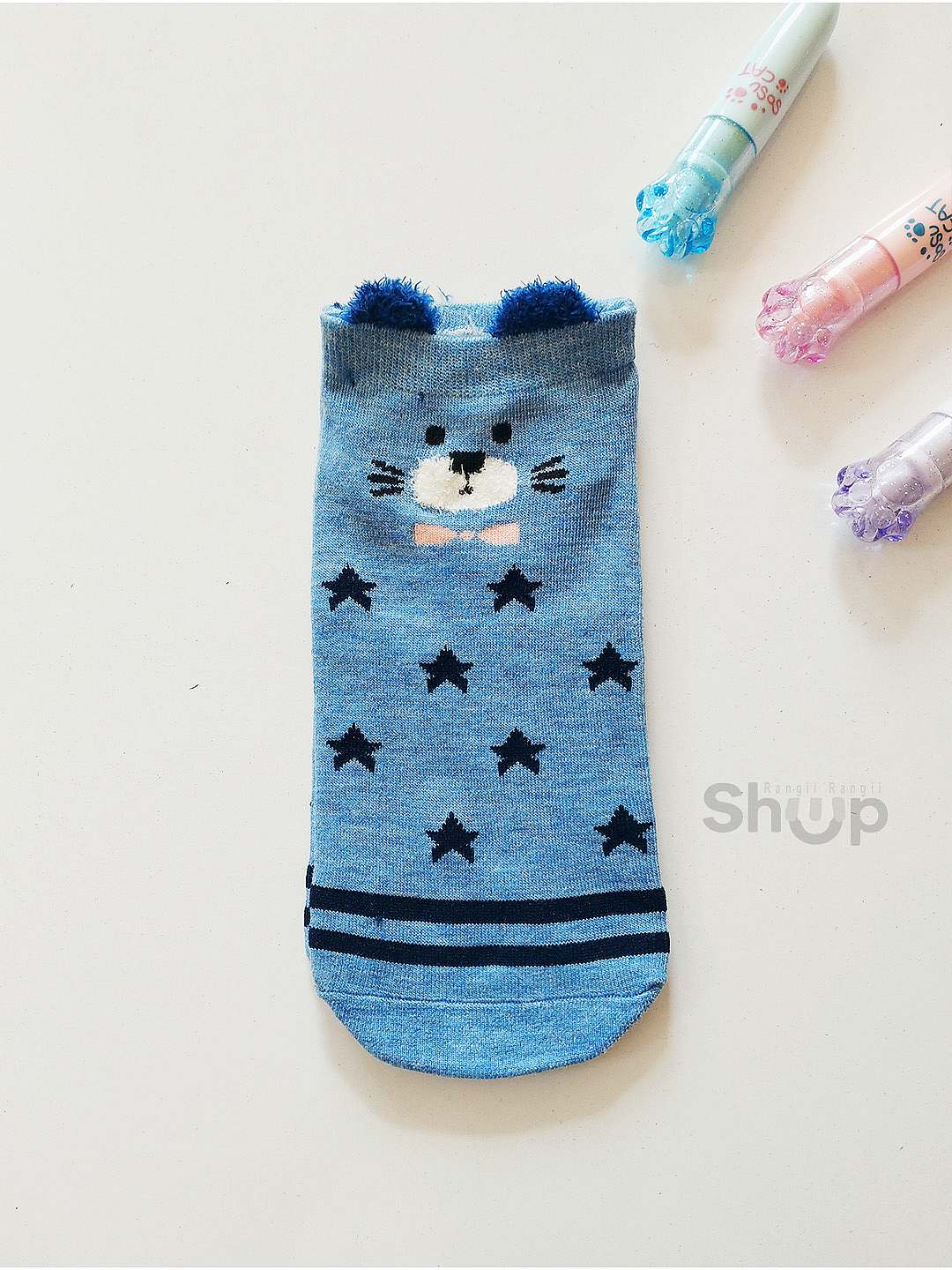 جوراب از بهترین الیاف بافته شده است . که از بروز حساسیت جلوگیری می شود .گوش های جوراب به صورت بوکله طراحی شده تم رنگ آبی آن باعث جذابیت بیشتر محصول شده است . پنچ طرح فانتزی و جذاب دارد که می توانید پا های خود را عروسکی کنید .